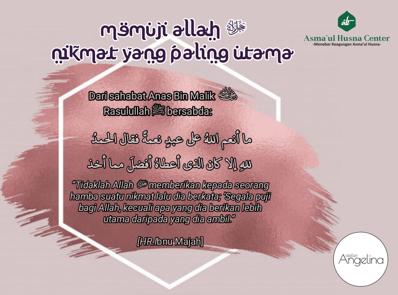 Artinya: “tidaklah Allah ﷻ memberikan nikmat kepada seorang hamba suatu nikmat lalu dia berkata;’Segala puji bagi Allah, kecuali apa yang dia berikan lebih utama daripada yang dia ambil.” [HR.Ibnu Majah].
